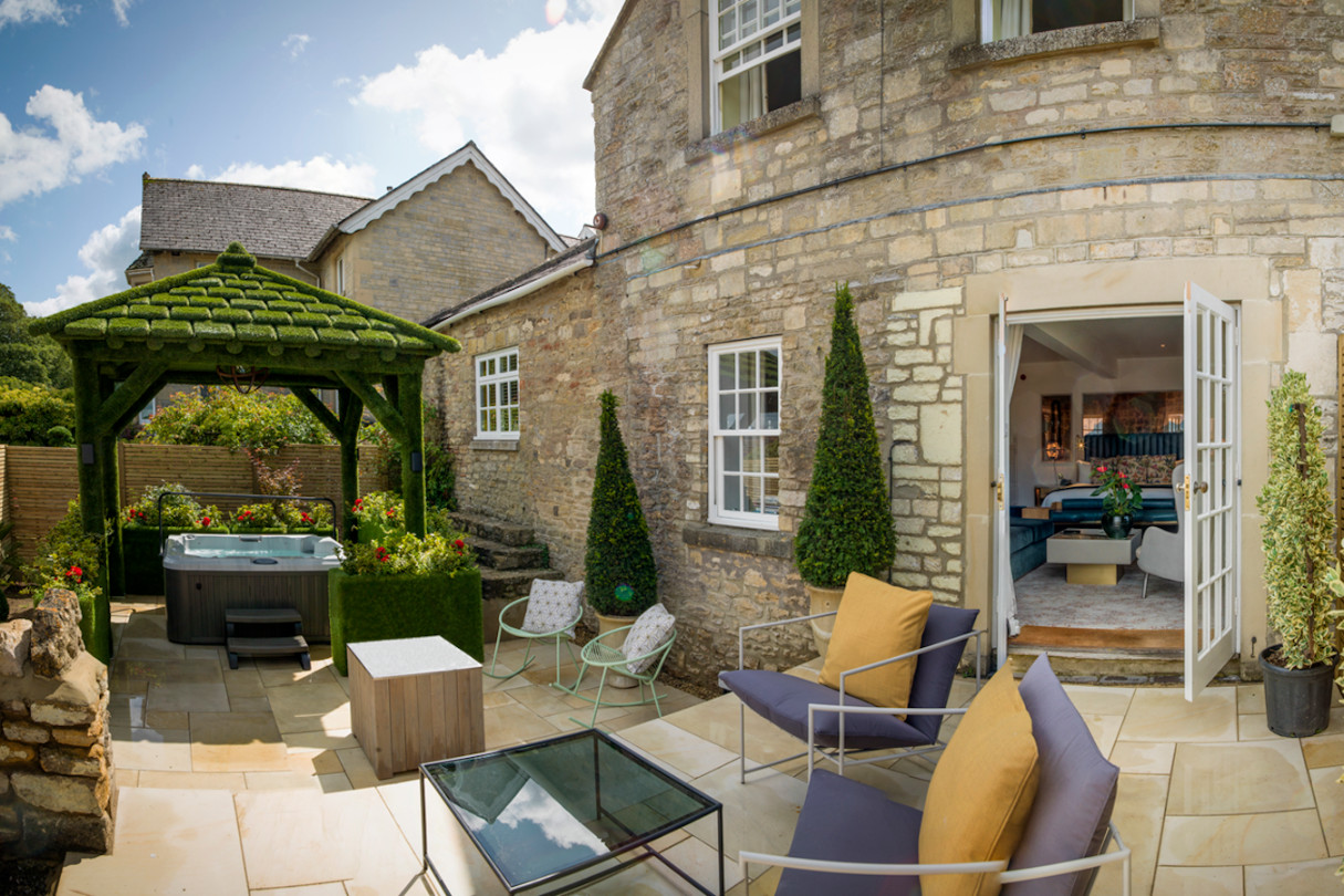 Eclectic, luxurious and slightly eccentric, this Georgian country house and its grounds are filled with creative artworks and ultra-modern indulgences including a spa and heated outdoor swimming pool. Plus, it’s just a hop, skip and a jump from Bath.